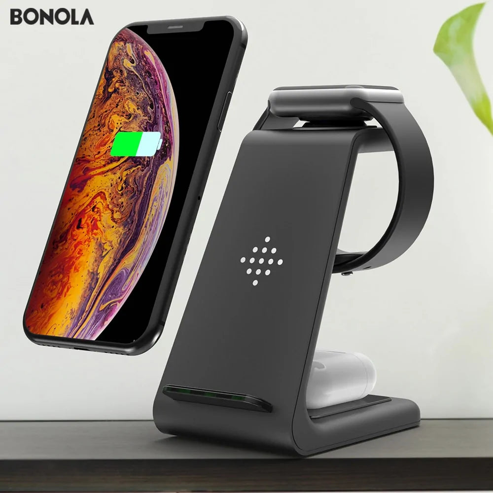 Charge your smartphone, smartwatch, and earbuds all at once without tangled cords. The Bonola 3 in 1 Wireless Charging Station keeps your essential devices powered and ready whenever you need them.